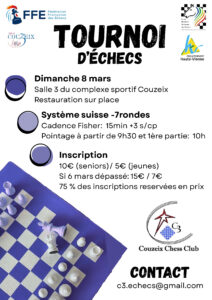 3 tournois : Masters >1900 ; Accession <2000 ; Espoirs U16<1550