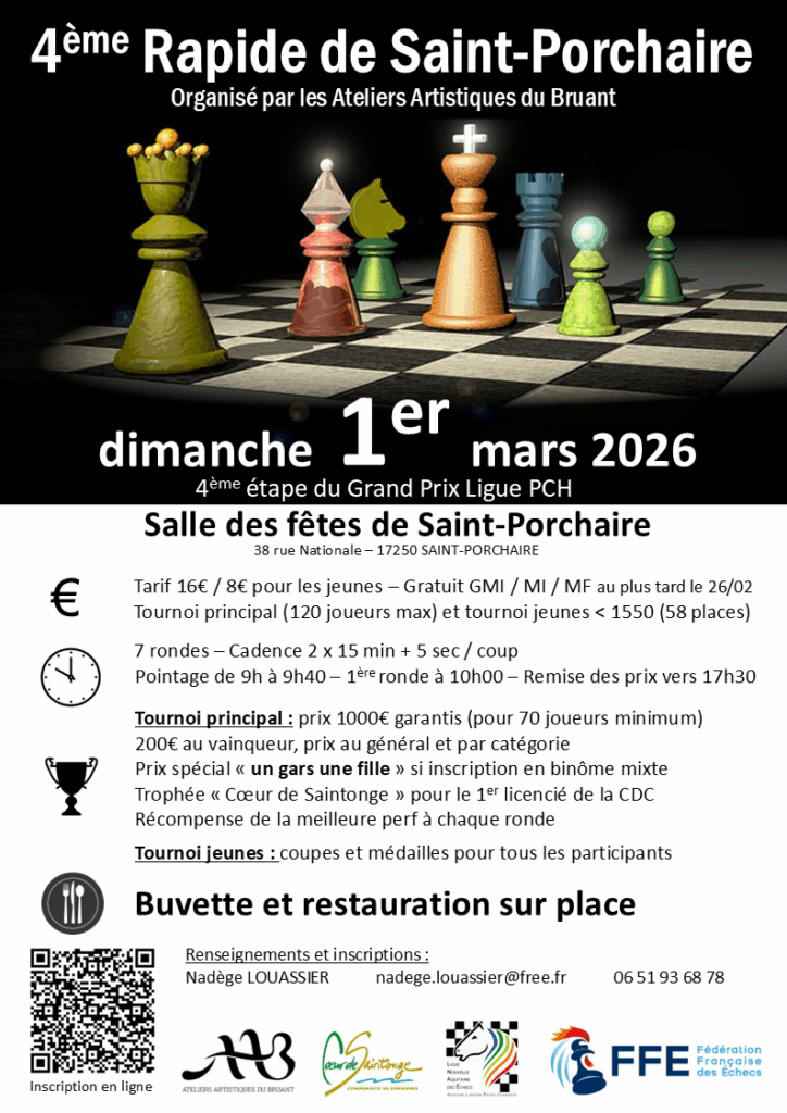 3 tournois : Masters >1900 ; Accession <2000 ; Espoirs U16<1550